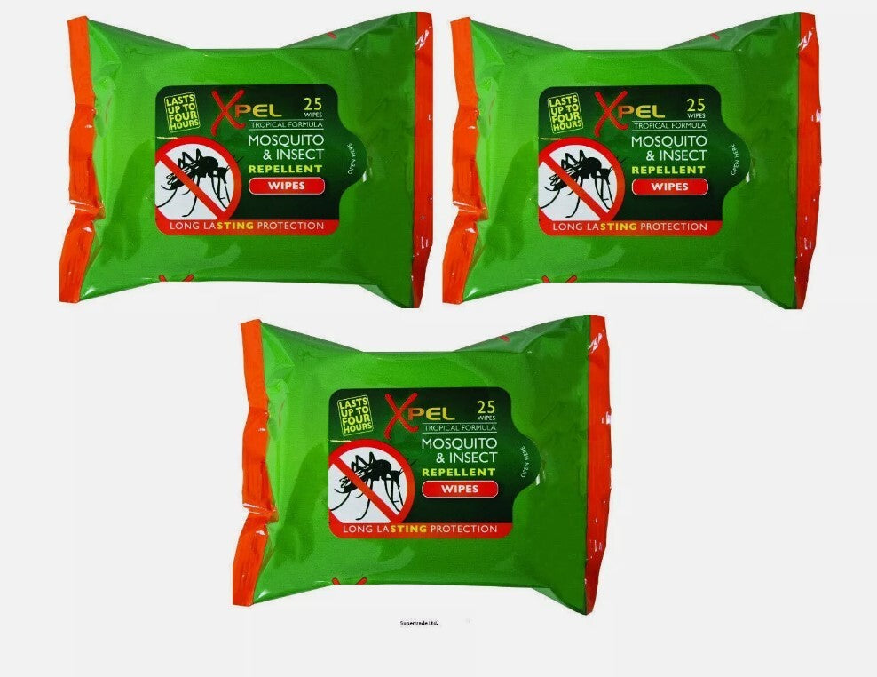 x3 XPEL Mosquito & Insect Repellent Wipes Long Lasting Protection - 25 Wipes
